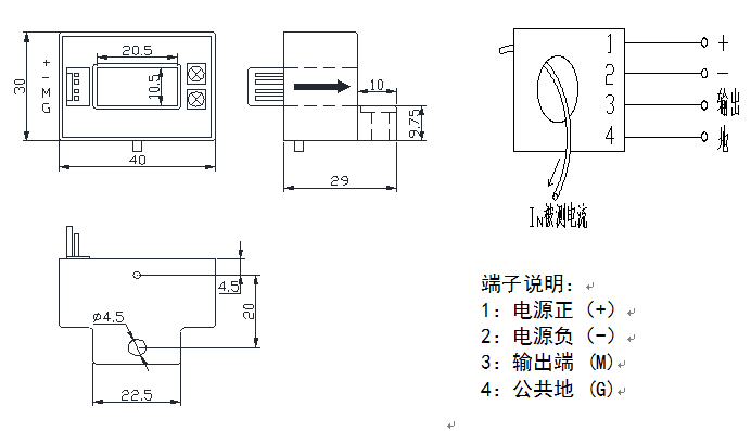 2、外形结构(mm): 3、接线说明: