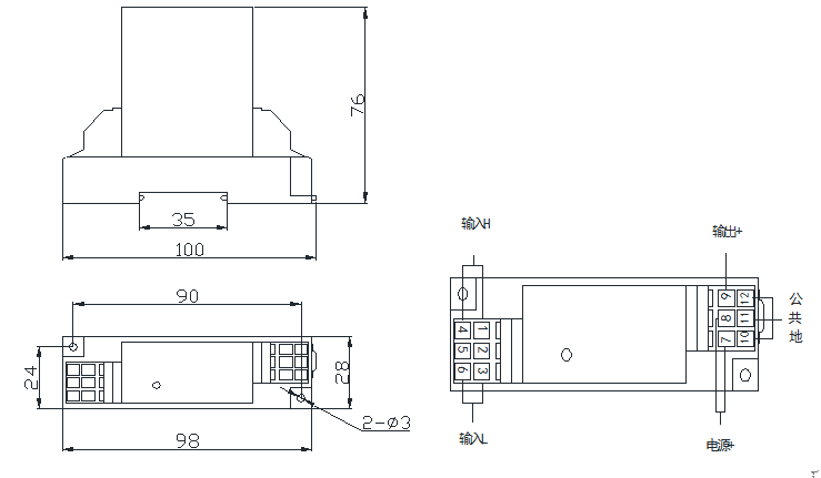 2、外形结构(mm): 3、接线说明: