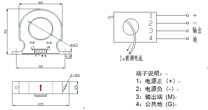 2、外形结构(mm): 3、接线说明: